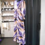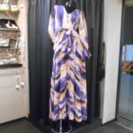 パープル×オレンジ マーブルプリント プリーツスカート ドレス