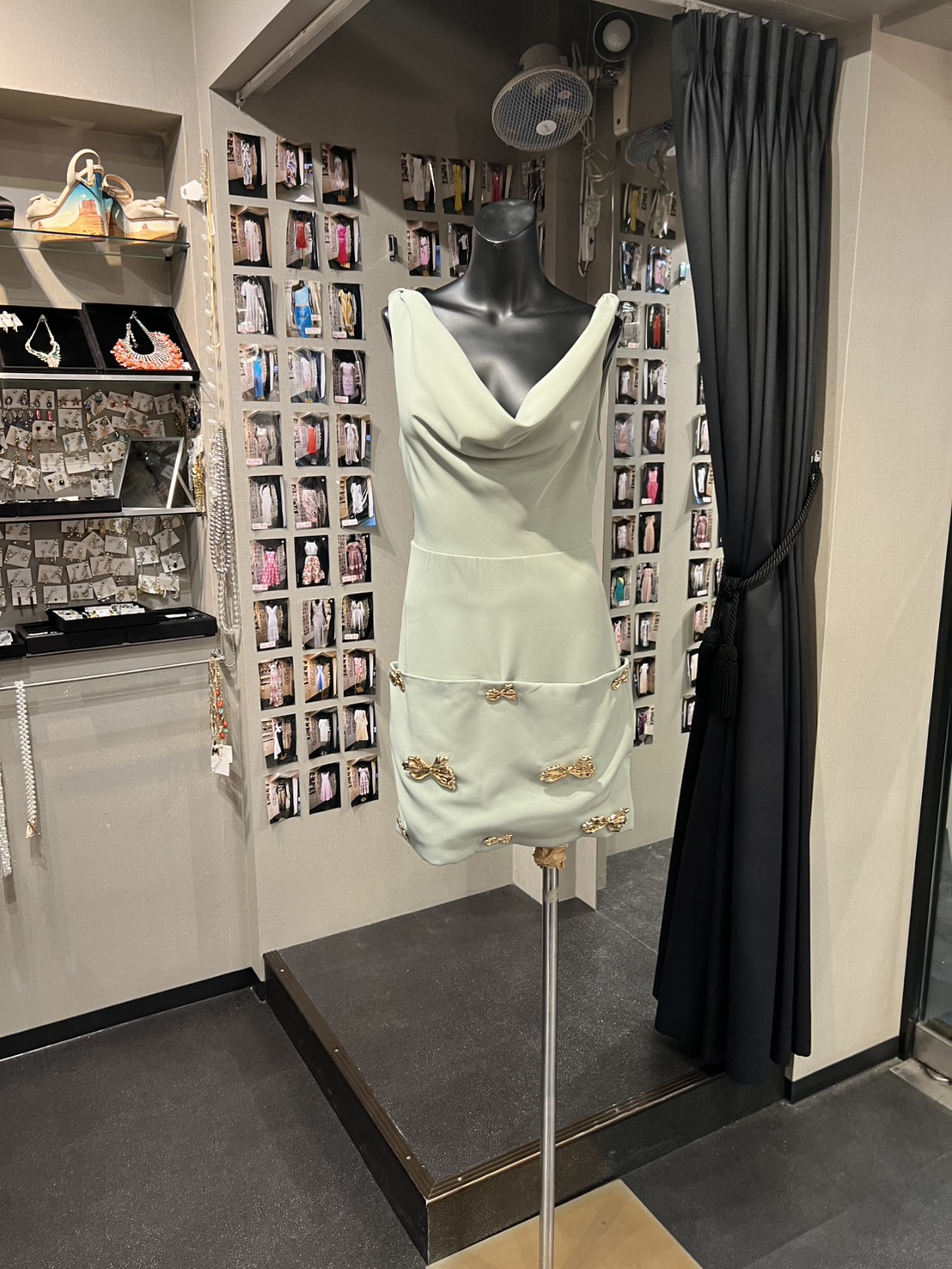 ミントグリーン Vネック マイクロミニ リボンアクセ